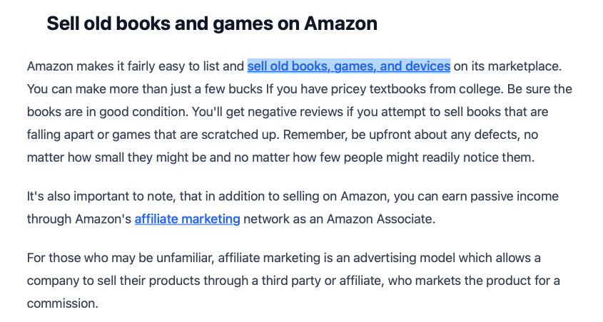 Он эту херню спалил, отрерайтил несколько статеек, органика подхватила его ссылку и вуа-ля - тип получал на полном пассиве комиссионные от амазон в районе 2000-3000$ каждый месяц не вкладываясь в рекламу.