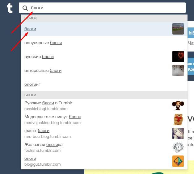Для этого сверху в адресной строк напишите слово «блоги» и в выпадающем меню также выберите это слово.