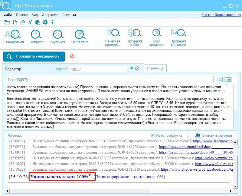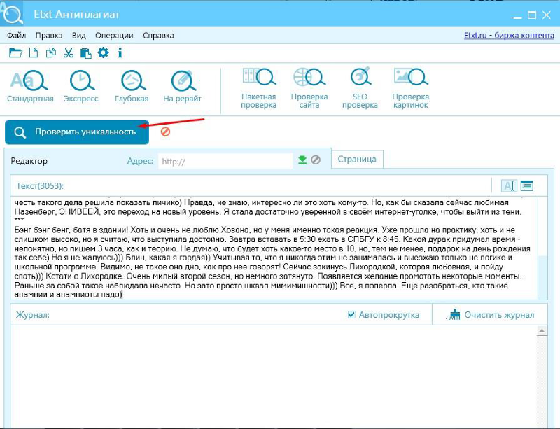 Так как размещать найденные статьи мы будет именно на бирже Etxt, то перед отправкой статей на модерацию обязательно проверяйте уникальность с помощью этой программы, чтобы избежать недоразумений.