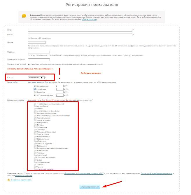 4. Регистрация на текстовой бирже, которая будет платить за подобранные тексты
