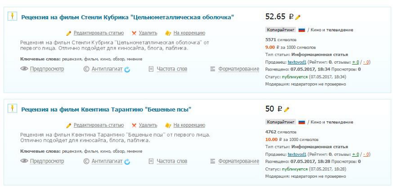После того, как ненужные слова убраны и текст «причесан», добавляем его на биржу для продажи!