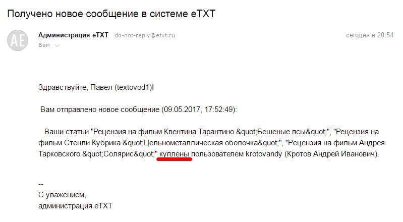 Деньги с продажи статьи будут зачислены на ваш баланс на бирже etxt.