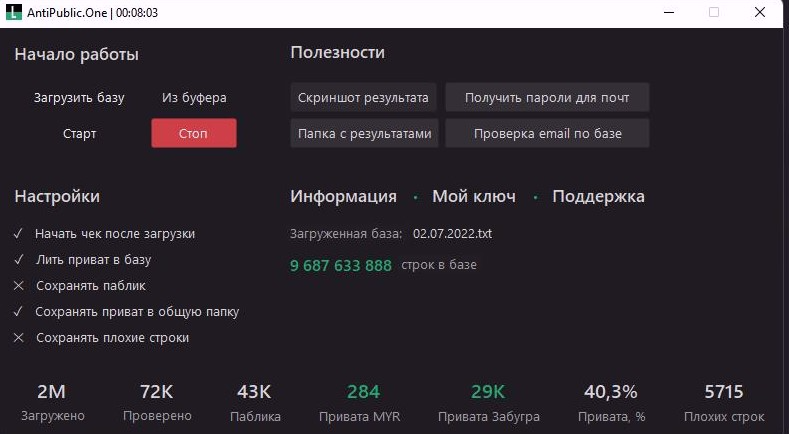 Наша команда, ежедневно занимается поиском баз данных, на данный момент у нас собралась уникальная база данных в размере 7ккк+ строк.