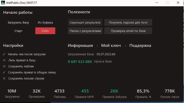 Данные базы приводим в должный вид, удаляем дубликаты строк, чистим от генерированных строк, проходим сверку через личный LOCAL ANTIPUBLIC.