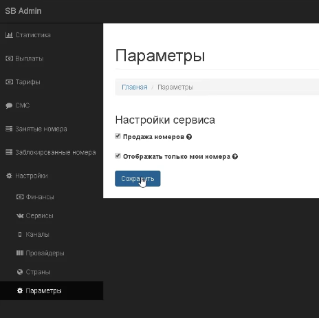 Если же вы хотите только регистрировать на свои сим карты а не продавать номера на сайте то убираете галочку "Продажа номеров.