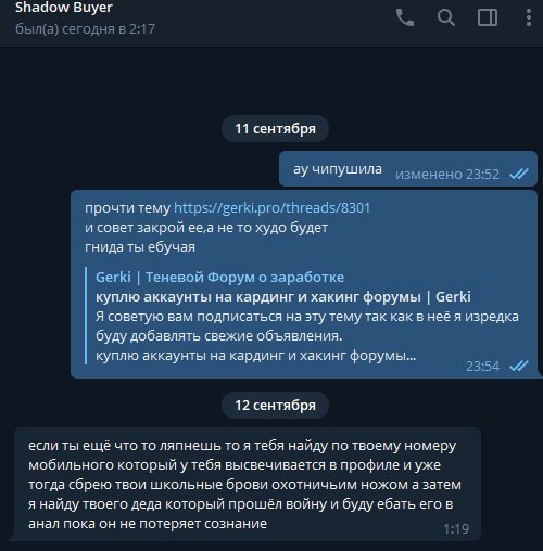 То есть ты сам ему написал, назвал "ебаной гнидой", "чепушилой". Действительно, хули это он угрожать начал нормально же общались :ROFLMAO: