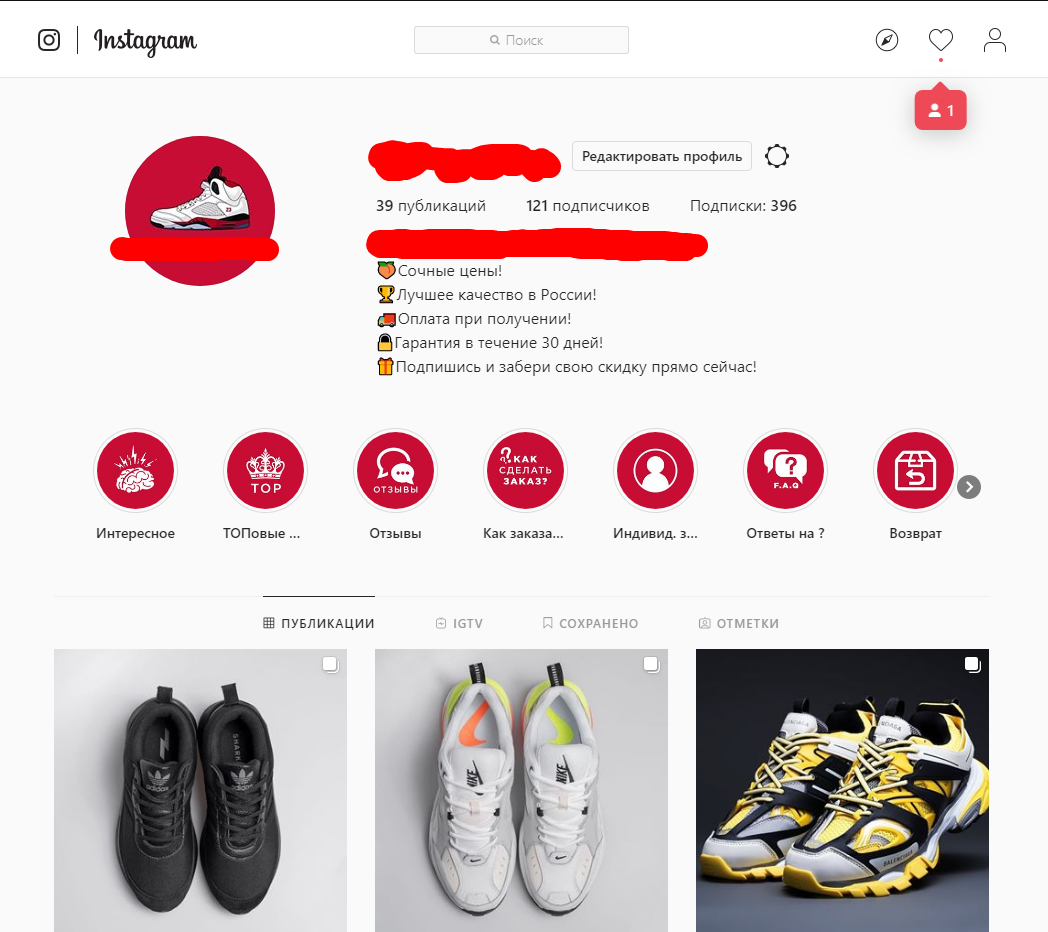- Сам аккаунт в инстаграм, готовый магазин, который продаёт качественные реплики трендовых кроссовок, по смешным ценам, 120 подписчиков (набрал за неделю массфоловиннга), лайки, просмотры не накручивал, стату прикрепляю. (Телефон, email, акк в Фесбук легко перепривязываются)