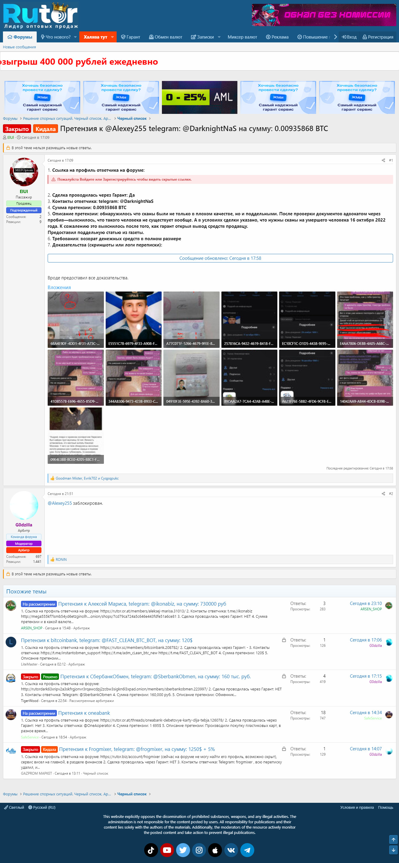 арбитраж тут долгим не будет-лично для меня точно потому что я доказал что он кидок с форума рутора Назар +я тебе принёс три бана сюда-с даркмаркета с опенкарда и с пробива на этого пассажира